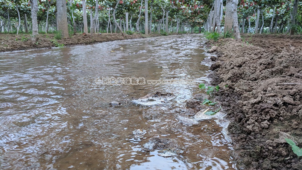 六月,开始进入每年高温天气的时段,这段时间是各种果实迅速成长的阶段,但是炎热的天气也会造成土地水分的急速蒸发。对于猕猴桃这种含水量极大的水果来说,缺水会极大的影响果实的生长。