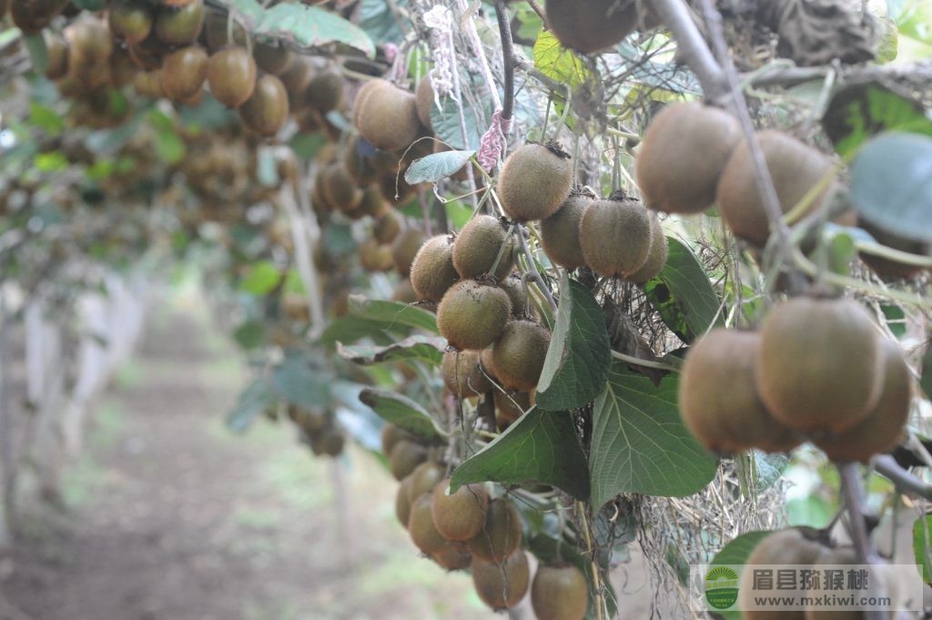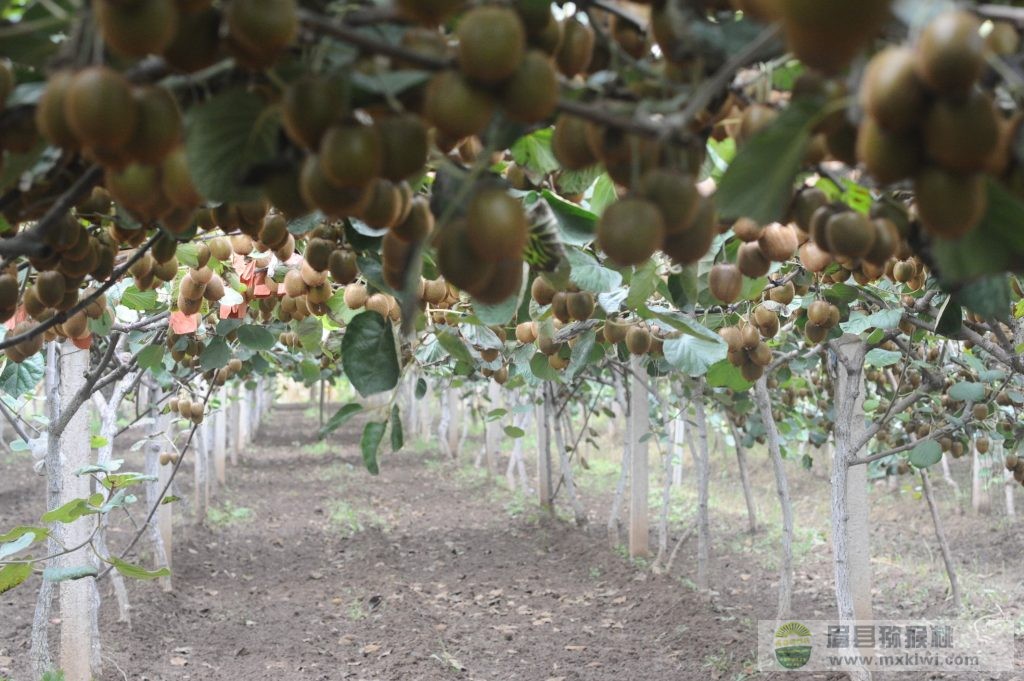 快摘果了,把地上的草收拾的很干净。父母种植猕猴桃是很讲究的~