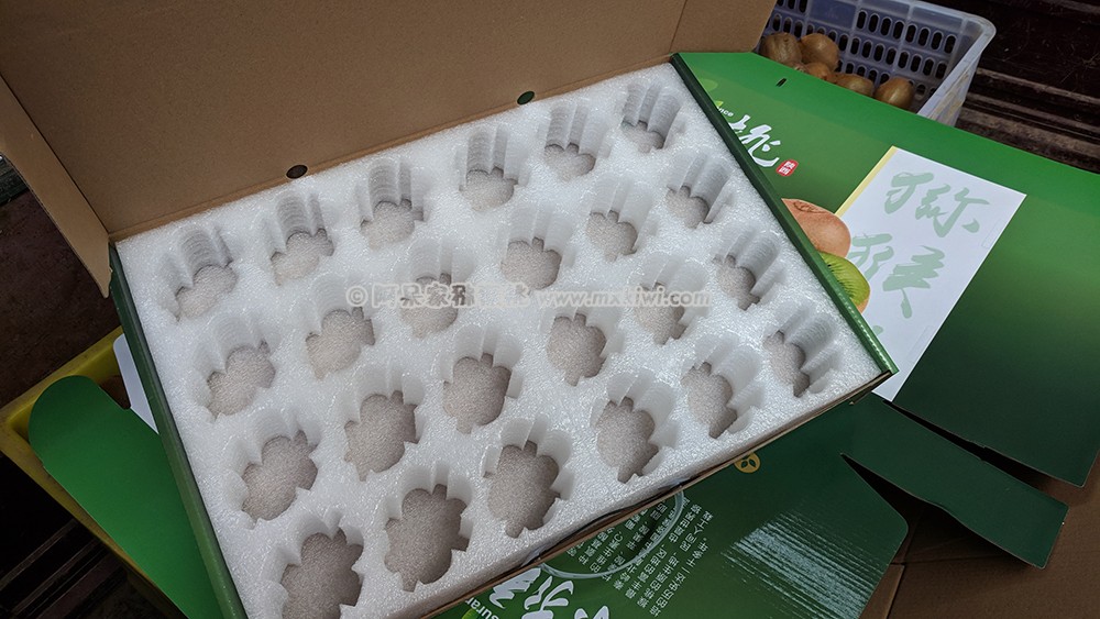 最后表面上再覆盖一张泡沫材质的软质薄膜,就可以封箱了。相比早期的蛋壳型,和十字纸板分隔的结构,这种新型的内部结构,装好的果子不易散,不易错位。没有过度包装,既不奢华艳丽,亦不简陋失仪,简洁明了,得体大方。